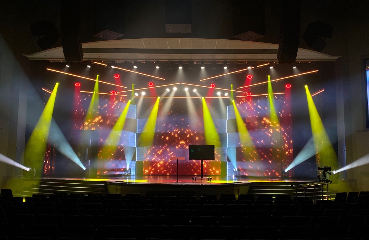 E2i has been a partner with the Church since 2012, providing solutions for their broadcast and extension campuses with lighting and LED video technology. But this latest project was a year in the making due to their determination to select the very best fixtures and build flexibility within the already constructed worship facility. In their determination to create a ‘tour grade’ technical infrastructure, the visual upgrade to the stage space is an exciting and ongoing process.