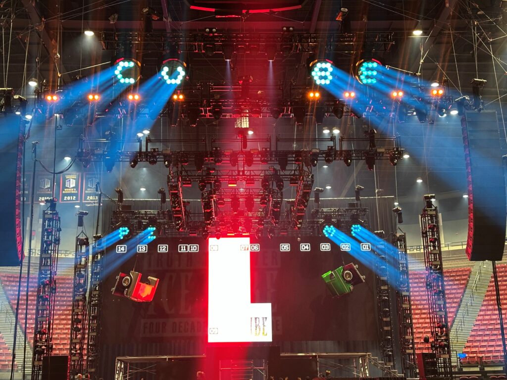 One of the production features of Ice Cube’s recent Truth to Power: 4 Decades of Attitude tour was the appearance of eight GLP MAD MAXX LED fat beams hung above the stage of each of the 22 arenas visited. Although these giant pieces of real estate weigh over 200 kg – and were designed to emulate the classic 7K xenon searchlights of old – they were purpose engineered to be flown. And this was one of the biggest deployments so far for the relatively new fixture.