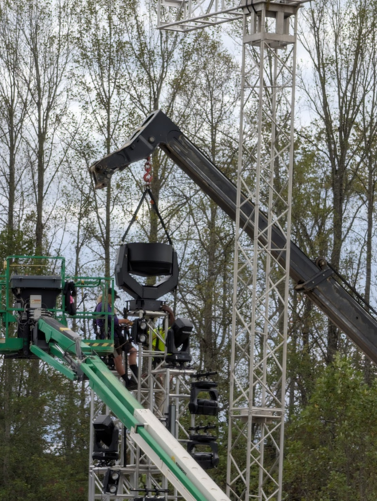 This deployment was an unqualified success. “They definitely achieved the desired mirroring of shape language and desire for a giant fixture to match our creative approach to the scenic design,” Chris Ruppel summarized. “We got unlucky with the weather on day 3 but one happy surprise was that they looked incredible in the air, bouncing off the rain droplets and illuminating the low cloud cover.”